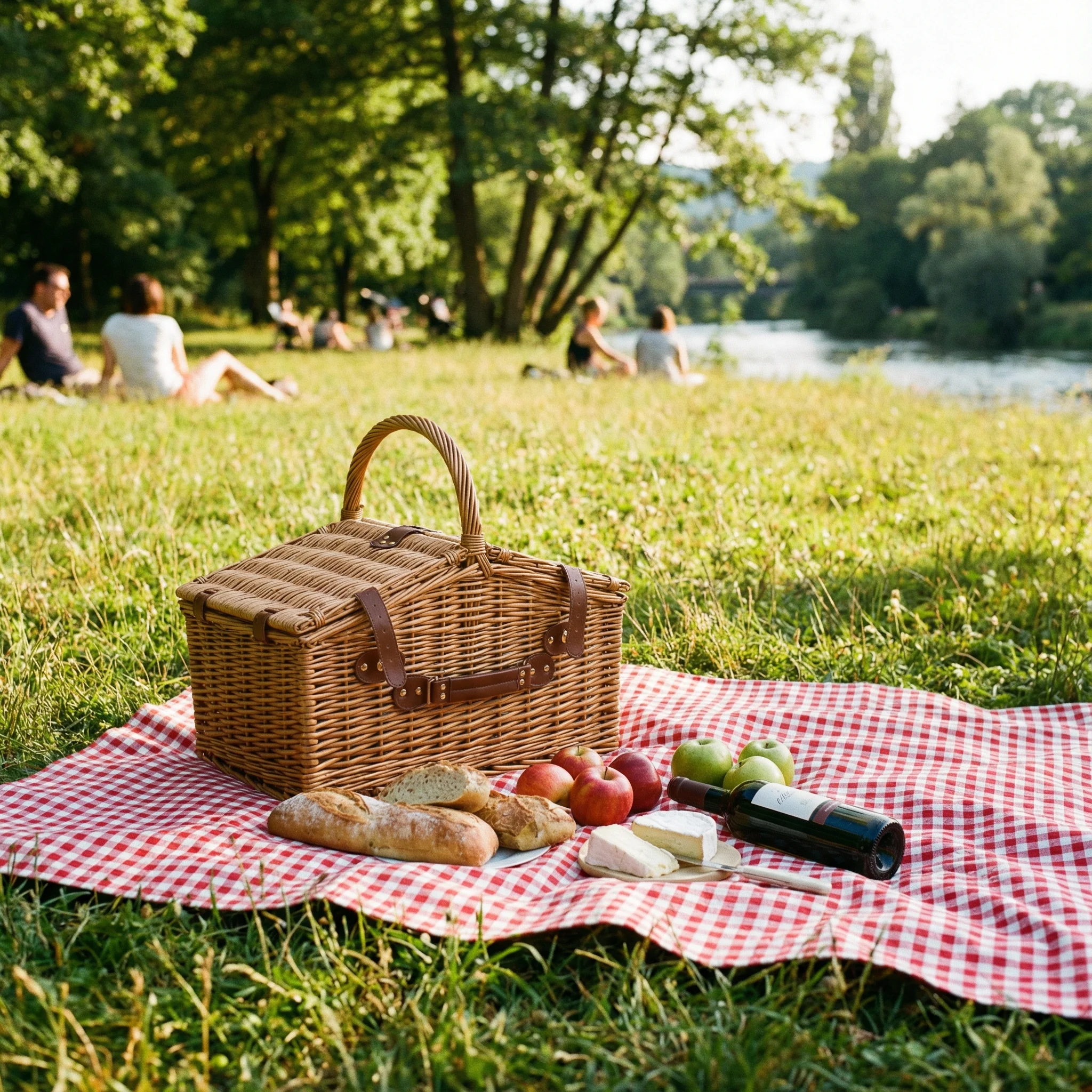 Profesjonalna grafika produktowa AI na świeżym powietrzu w scenerii pikniku. Zmiana tła na zieloną łąkę z kocem piknikowym. Zdjęcie produktowe na Allegro i Amazon idealne dla produktów spożywczych, termosów, kocy i akcesoriów outdoor - gotowe w sekundach.