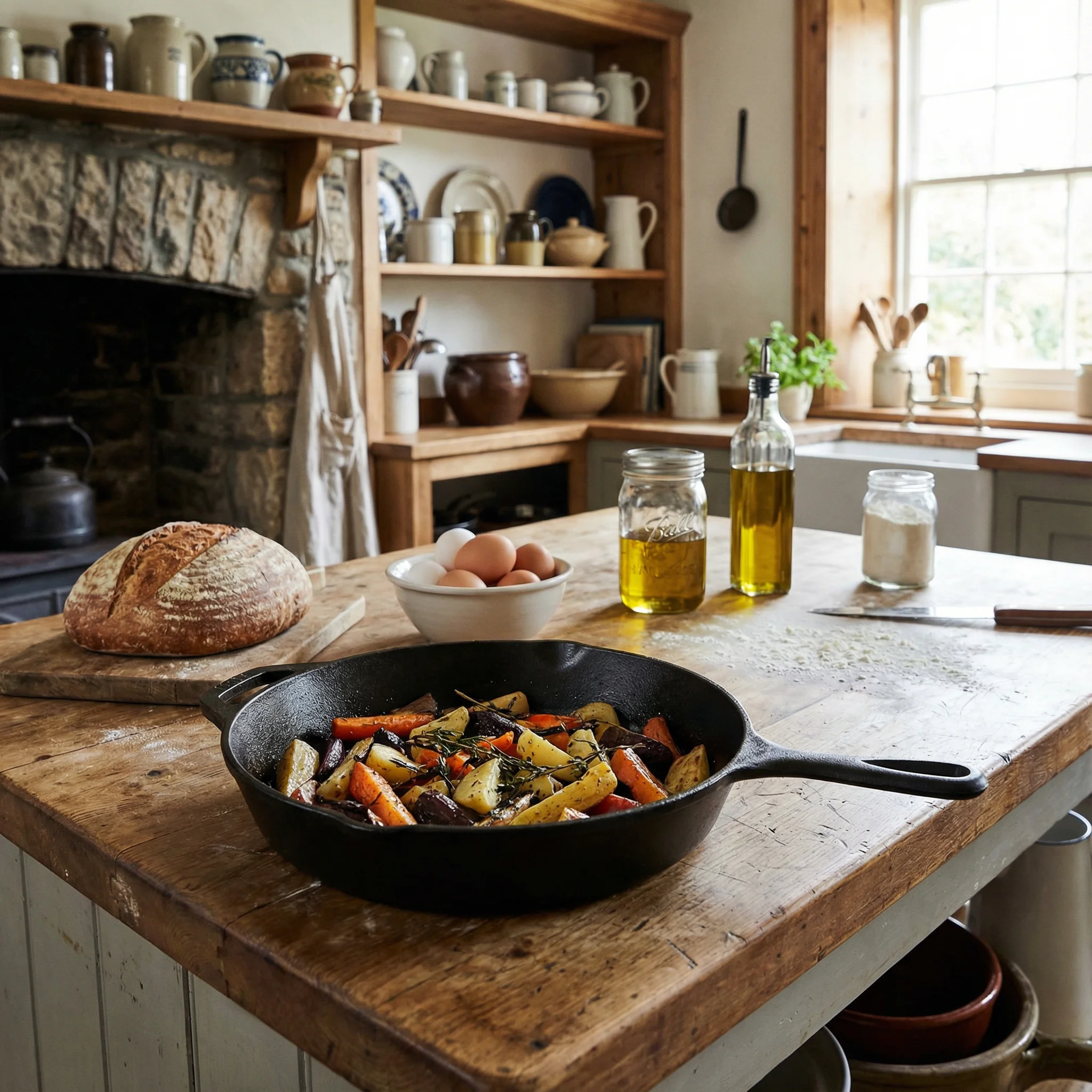 Profesjonalna grafika produktowa AI w domowej atmosferze rustykalnej kuchni. Zmiana tła na ciepłe wnętrze z drewnem i naturalnymi materiałami. Zdjęcie produktowe na Allegro i Amazon idealne dla produktów spożywczych, naczyń i akcesoriów kuchennych - gotowe w sekundach.