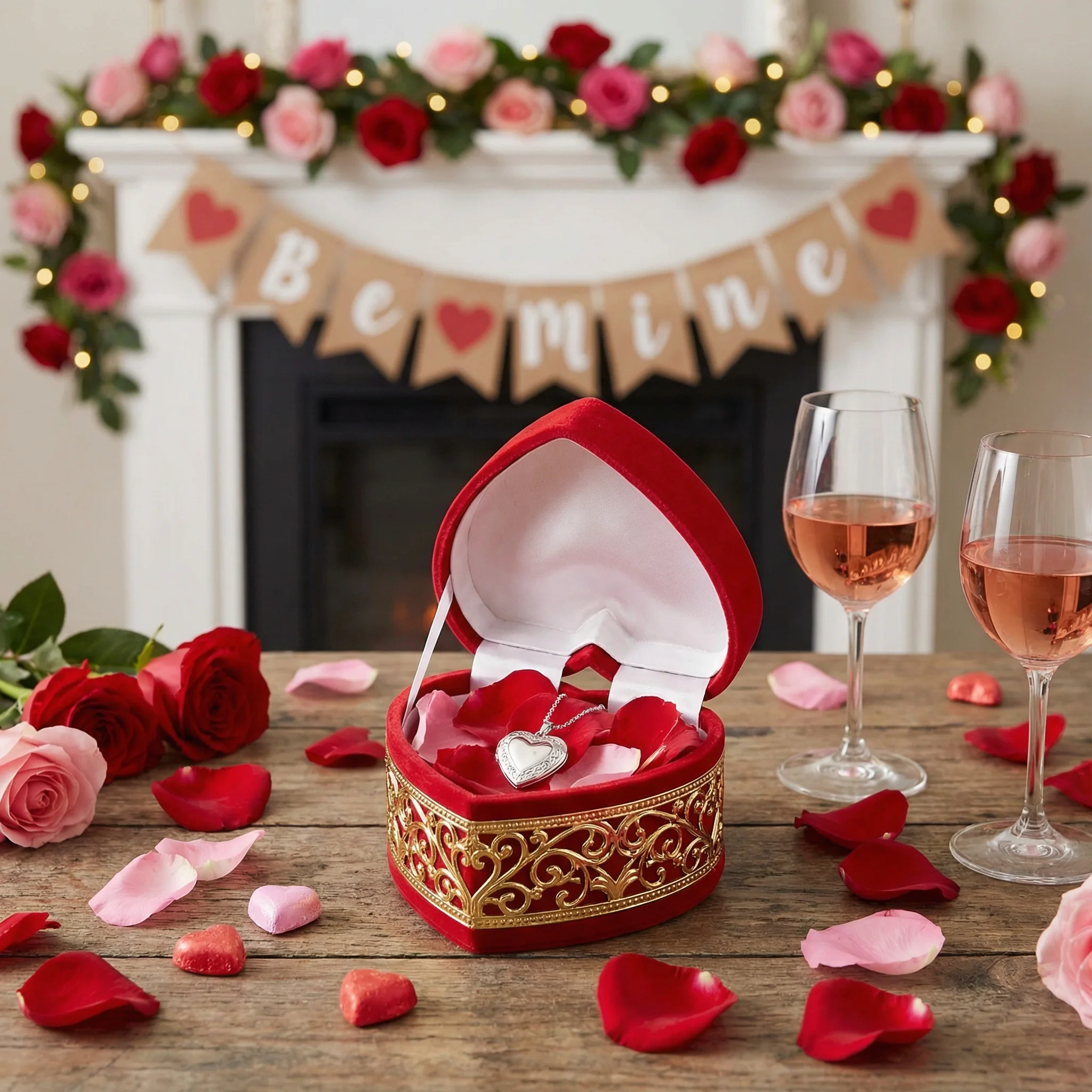 Profesjonalna grafika produktowa AI w romantycznej atmosferze Walentynek. Zmiana tła na scenę z sercami i czerwienią. Zdjęcie produktowe na Allegro i Amazon idealne na prezenty walentynkowe - gotowe w sekundach bez fotografa.